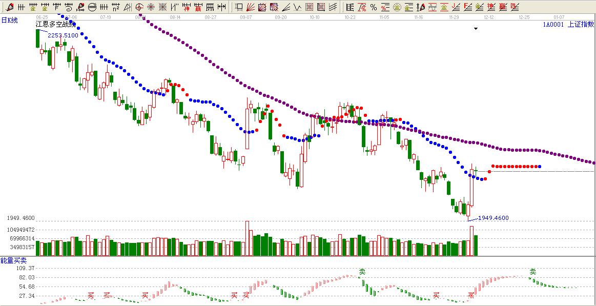 ☆依據贏家江恩多空戰線提示:大盤處于江恩多空戰線長期勢處于看空區域,短期大盤上攻短期多空戰線上方,顏色依然處于空頭。謹慎做多。