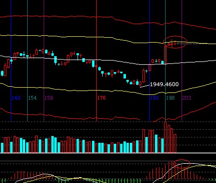 大盤日線進(jìn)入本周時間窗口,三個交易日上攻極反通道強(qiáng)勢外軌線均無功而返收其線下,依據(jù)贏家江恩極反通道規(guī)則短線、波段此線上攻力度轉(zhuǎn)弱注意保護(hù)近期收益,短周期生命線支撐2135-2140,外軌線阻力2165-2174;