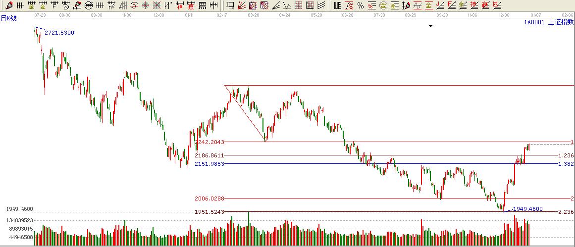 ☆依據贏家江恩黃金價格延伸線提示:大盤上方1位置壓力2245看空,下方1.236位置支撐2186附近。