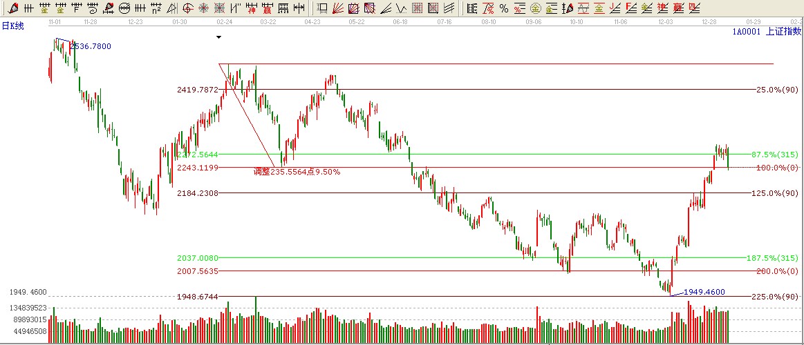 ☆依據贏家波段百分比伸線提示:大盤315度位置壓力2270破位,這里將構成重要的壓力位置,下方90度支撐2185附近,跌破一線看空一線,看空
