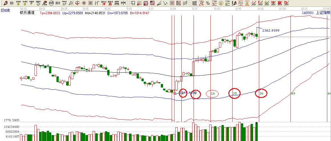 ★依據(jù)贏家江恩系統(tǒng)極反通道提示:大盤極反通道紅色外軌道線2395點(diǎn)附近壓力,大盤藍(lán)色上軌支撐2280點(diǎn)。大盤依然處于極反通道生命線上方看多。