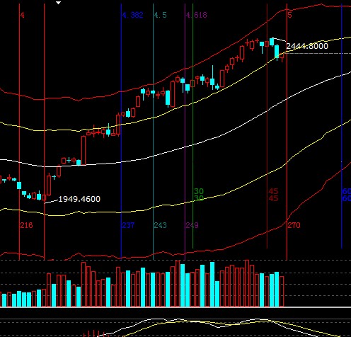 指數收盤價正是極反通道外軌線位置,分鐘圖盤中延續震蕩反抽動作,30分鐘生命線不能收復近期確認展開震蕩下行趨勢,依據規則失守一線看低一線,整體趨勢生命線不破做多觀點不變,個股倉位上做高拋低吸降低成本,短期支撐2358-2367,阻力2400-2408;