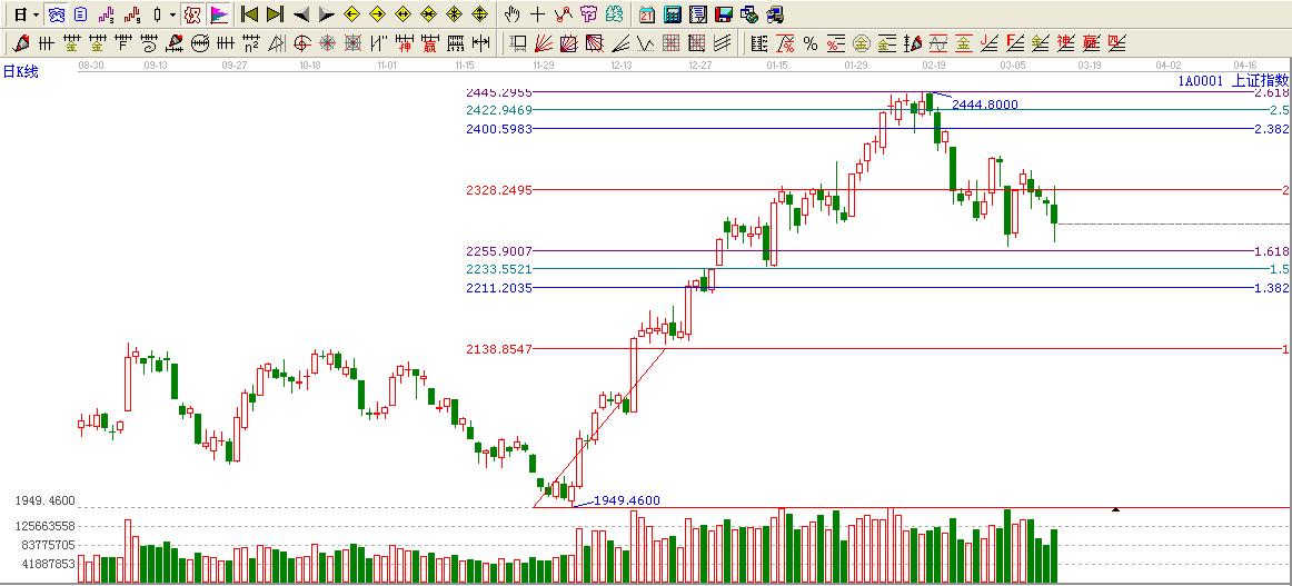 綜上所述:大盤再度失守極反通道生命線,生命線2320不過看低一線至黃金分割1.618位置2252點附近。