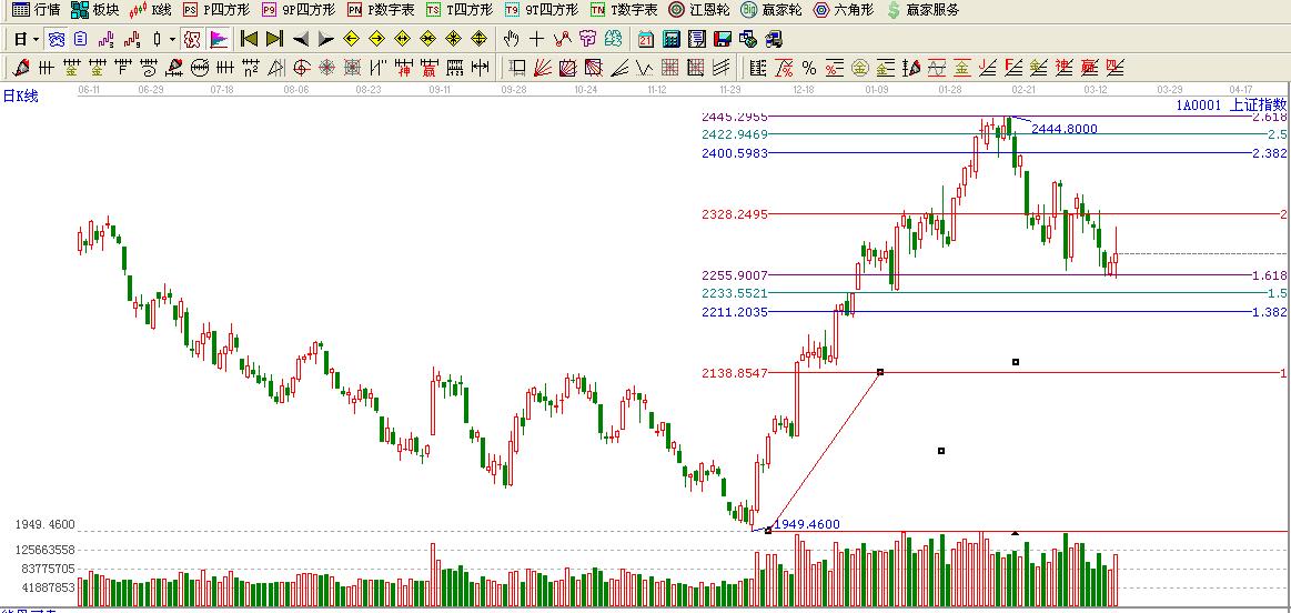 ★依據贏黃金價格延伸線提示:大盤處于黃金分割延伸1.618位置2252點這里不破看高一線至2倍位置2325點附近