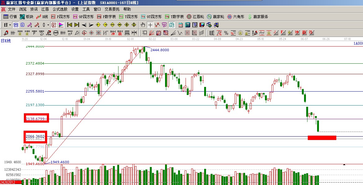 ★依據贏家江恩系統黃金分割提示:直接低開在0.618位置2138點下方,下方支撐是2055-2066如圖(2);