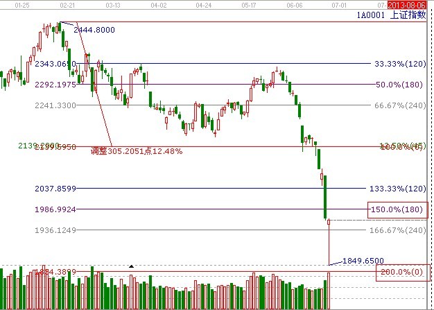 ★依據贏家江恩系統波段百分比延伸提示:自2444點至江恩百分比45度位置(2139點)做圖,支撐位是1849、1834、阻力位是1985點(180度位置);