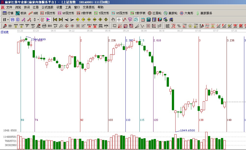 周末受央行放開貸款利率影響,金融地產帶動下大盤低開1個點隨后震蕩攀升回補缺口,板塊方面計算機應用、通信服務、概念類如4G、傳媒娛樂表現良好,兩市共有54只個股漲停,1只跌停;技術圖形當前A股走勢圖形符合前期課程中講的MACD精解里弱勢買入信號,因處在弱勢需要繼續觀察量能與技術圖形、指標的配合,因此策略上激進者回探1950-1970試探性建倉,突破2025加倉否則到此位置獲利出局,穩健者仍以休息為主;