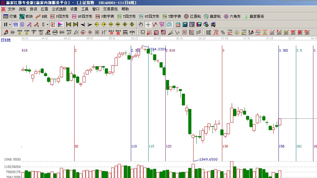 ☆依據贏家江恩系統乾坤K線提示:藍色K線休息區轉變為紫色警示信號,明日觀察盤中情況紅色K線為操作信號;(1)