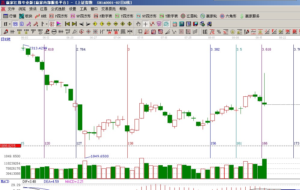 ★依據(jù)贏家江恩系統(tǒng)黃金時間周期線提示:時間窗口選擇下行趨勢,下個日線級別的時間窗口在23或26號;