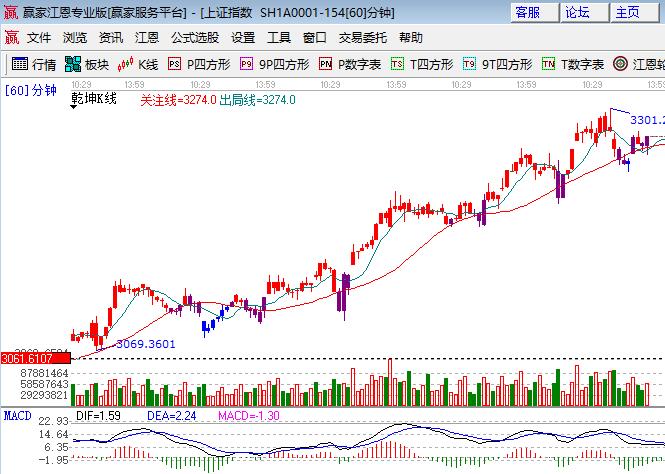 咨詢:13333833889周四大盤受經(jīng)濟(jì)數(shù)據(jù)和油價(jià)大漲刺激高開(kāi)震蕩走高上漲0.72%,深成指和中小板小漲,昨日強(qiáng)勢(shì)創(chuàng)業(yè)板微跌。板塊方面地產(chǎn)、家電、鋼鐵、船舶、汽車等領(lǐng)漲,銀行漲幅墊后;題材方面無(wú)特別強(qiáng)勢(shì)的人氣概念出現(xiàn),高送轉(zhuǎn)沖高回落,低價(jià)次新股崛起,個(gè)股漲多跌少成交量萎縮。技術(shù)方面短周期15、30分鐘收盤勉強(qiáng)站在生命線上,日線收在江恩百分比45度位置,整體保持在超強(qiáng)通道里運(yùn)行,趨勢(shì)扭轉(zhuǎn)的信號(hào)為失守外軌線3240則說(shuō)明調(diào)整開(kāi)始,在近期行情中關(guān)注此線,線上則保持現(xiàn)有的節(jié)奏操作,線下則停止短線操作,3263、3240為日內(nèi)支撐,3283、3300為日內(nèi)阻力,僅供參考,不構(gòu)成任何投資建議。