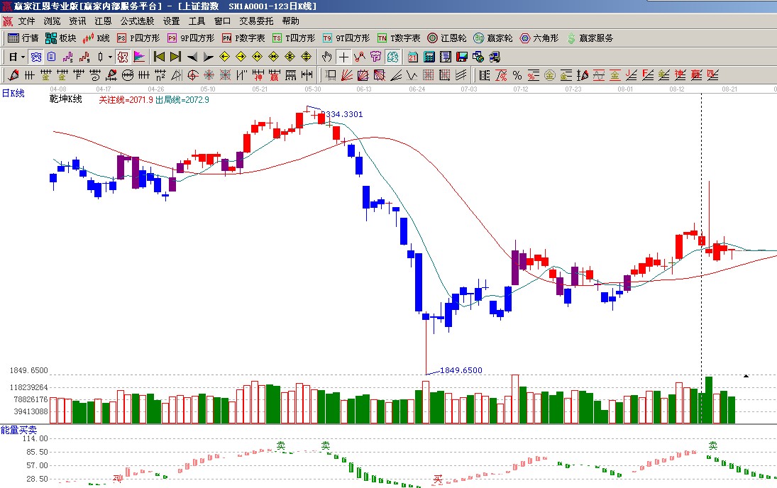 指數(shù)盤中走勢波瀾不驚圍繞60分鐘生命線來回震蕩穿越,15、30分鐘都處在弱勢區(qū)域,后天將進(jìn)入日線時間窗,或許會打破短期局勢,從技術(shù)角度分析策略上生命線上以持股為主,生命線下則以控制倉位為主;銀行、地產(chǎn)等周期性板塊走勢拖累大盤,但券商股板塊反而出現(xiàn)了反彈,原因在于光大證券沒有跌停,放出巨量!盤面上特征:一是創(chuàng)業(yè)板依然是主力炒作的主戰(zhàn)場
