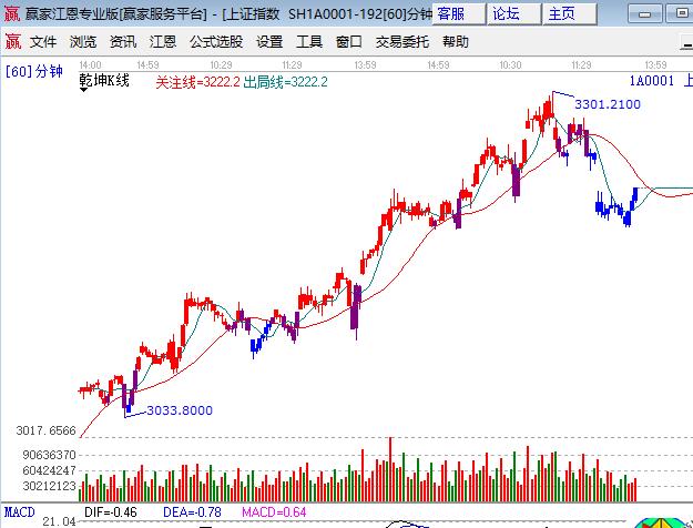 周三大盤低開一路節節攀升上漲0.71%,幾大指數全線上漲。板塊方面鋼鐵、煤炭、有色資源類領漲,銀行、石油下跌;題材方面,新零售和年報高送轉概念領漲;個股普漲成交量持續萎縮。技術方面,江恩百分比315度3197點再度成為盤中反彈支撐,上方零度位置為3234點,此點位同極反通道外軌線形成盤中阻力,短周期也將觸及30分鐘生命線,操作上短線結合所持個股盤中壓力進行高拋,波段3成倉持股不動,階段縮量反彈無力后還將延續震蕩向下調整,確認生命線,3205、3191為日內支撐,3234、3240為日內阻力,僅供參考,不構成任何投資建議。