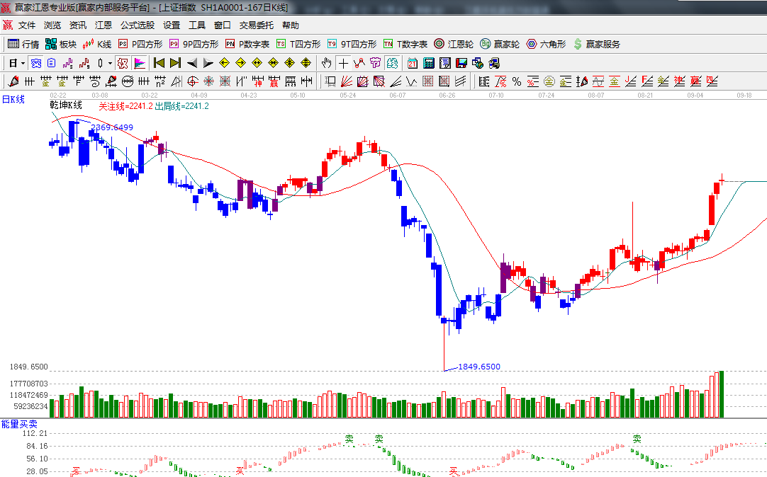 ★依據(jù)贏家江恩系統(tǒng)乾坤K線提示:K線遠離短期出局線會有對此線的修復(fù),整理K線處于安全操作區(qū)策略上以持股為主;(1)