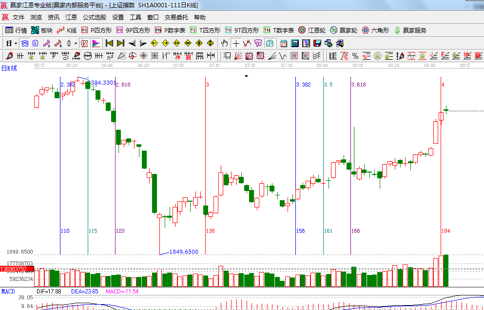 ★依據(jù)贏家江恩系統(tǒng)黃金時間周期線提示:短期時間點為13號,下個日線時間點為19號;