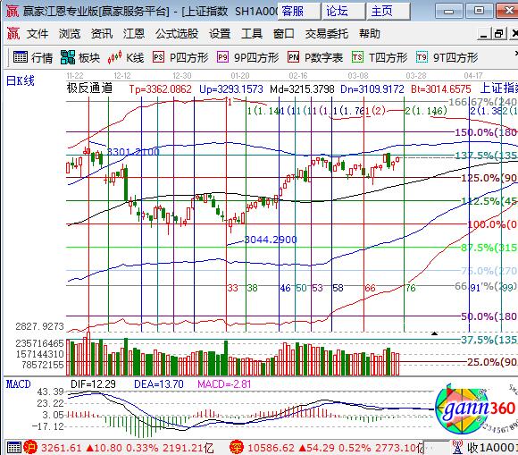 2017年03月22號(hào)贏家江恩軟件工具展示大盤(pán)分析