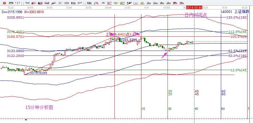 昨日分析及走勢(shì):昨日早盤分析中,給出的支撐是3120,壓力是3155點(diǎn),日內(nèi)時(shí)間10點(diǎn)。實(shí)際走勢(shì)為:最高3155點(diǎn),一點(diǎn)不差,日內(nèi)時(shí)間10點(diǎn)在3131止跌起漲,沒(méi)有完全回踩到預(yù)期的支撐,但時(shí)間為先,對(duì)照下方15分鐘圖和30分鐘圖,可以清晰的看到昨天市場(chǎng)的運(yùn)行軌跡。以前分享過(guò)這個(gè)經(jīng)驗(yàn),再說(shuō)明一次:以兩個(gè)高點(diǎn)做等距周期,按照經(jīng)驗(yàn)對(duì)應(yīng)的下個(gè)時(shí)間見(jiàn)低點(diǎn)概率大,昨天的走勢(shì)再次驗(yàn)證了此成功率。15分鐘和30分鐘小雙頭預(yù)測(cè)了昨天的低點(diǎn)時(shí)間,大盤個(gè)股都通用,有心的朋友可以結(jié)合自己的股票試試奧。大盤生命線附近震蕩?kù)柟蹋瑑H作短線回調(diào)對(duì)待,3016和3022雙針引發(fā)的上漲遠(yuǎn)未結(jié)束,所以按照自己的策略執(zhí)行交易即可。