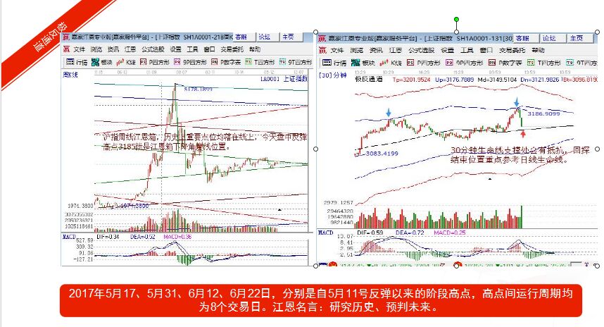 【贏家江恩點評:周線江恩箱在6月初提到本輪上攻注意3185點,見下面贏家江恩股票軟件截圖,依據軟件工具規則,日線極反通道生命線回踩不破波段仍看好后市。】
