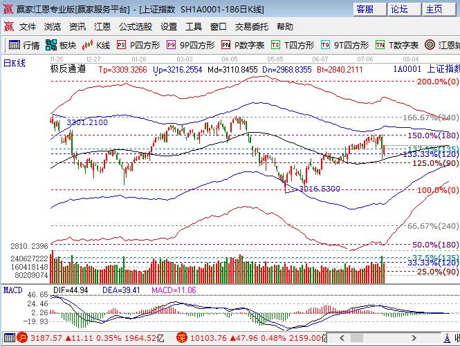 周二大盤低開震蕩小漲0.35%,幾大指數(shù)全線小漲,午盤創(chuàng)業(yè)板帶領(lǐng)下震蕩攀升。板塊方面,鋼鐵、煤炭和有色領(lǐng)漲,家電、銀行、石油、券商等下跌;題材方面,圍繞漲價、中報預(yù)增、一帶一路幾個方面,開板新股和一些高位白馬股走勢相對較弱,個股上漲居多,成交量同前期7月中上旬持平。技術(shù)方面,除日線外15、30、60均跌破極反通道生命線,短期生命線在3197附近為今日盤中阻力點(diǎn),日線震蕩后還有回踩生命線的概率,擇時在將7月6號附近減的籌碼回補(bǔ),當(dāng)前策略就是等待,倉位保持在4成,3174、3158為日內(nèi)支撐,3197、3202為日內(nèi)阻力,僅供參考,不構(gòu)成任何投資建議。