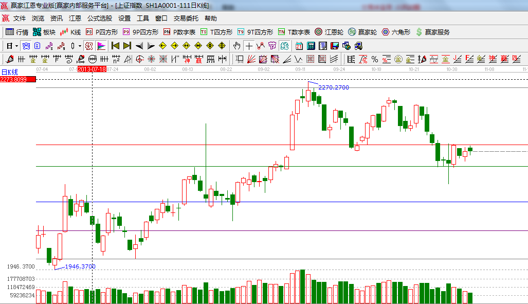 指數今日成交量為663億延續縮量橫盤局勢,當前圍繞2150點附近構筑一個整理平臺,三中全會前各路資金觀望氣氛濃厚,多空雙方都沒有進一步動作出現,隨著時間窗的推進指數時間窗即將開啟;盤面熱點油改勘探、節能環保、頁巖氣、交通工具等對維護市場人氣起了重大貢獻,技術方面短周期還有上攻動能,短期能否放量突破站上極反通道生命線成為判斷行情的重要信號;