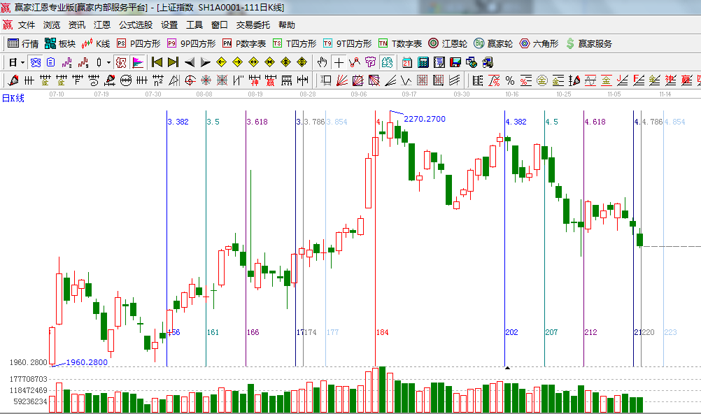 咨詢:13333833889指數(shù)遇到黃金分割周期線所分析的時(shí)間窗后選擇下行,十幾天的縮量橫盤小平臺(tái)宣告失敗,那么價(jià)格上通過極反通道與江恩百分比得出在2050附近,本周日線的時(shí)間窗是13號(hào),整體趨勢(shì)、均線系統(tǒng)、MACD指標(biāo)都在弱勢(shì)區(qū)域,操作思路上則以空倉(cāng)休息或輕倉(cāng)持股為主,操作時(shí)所挑選品種圍繞改革涉及到的行業(yè)為主或有事件推動(dòng)因素的概念股;