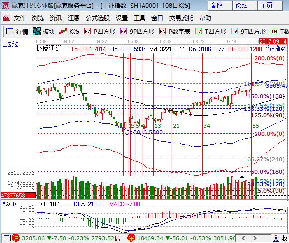 大盤周三低開沖高震蕩回落收長上影線小跌0.23%,創新高后幾大指數全線下跌,創業板領跌。板塊方面,鋼鐵、銀行、券商、有色煤炭是為數不多的紅盤板塊,石油、保險領跌權重;題材方面,雄安和漲價資源局部活躍,軍工、云計算、人工智能和次新領跌,個股下跌居多成交量放大。技術方面,滬指突破4月高點最高沖至3005點,午盤震蕩回落收盤在3300點下方,同時失守極反通道外軌線和江恩百分比240度,短周期15分鐘收盤在生命線位置,30、60分鐘離生命線還有回撤空間,日線圍繞外軌線震蕩不能強攻收漲,則階段震蕩回探的可能性將出現,嚴探操作節奏,倉位保持在4成,3265、3253為日內支撐,3301、3308為日內阻力,僅供參考,不構成任何投資建議。