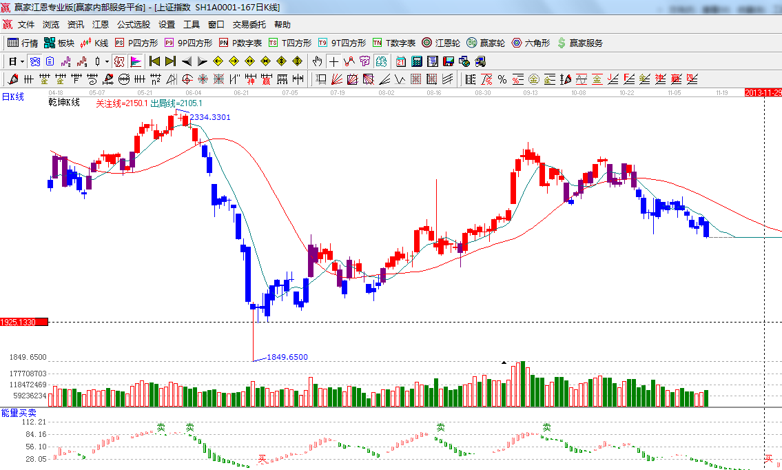 ★依據(jù)贏家江恩系統(tǒng)波段百分比延伸提示:黃金分割價格圖0.5位置是2090,0.382位置是2049;