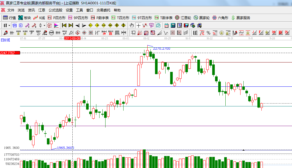 ☆依據贏家江恩系統極反通道提示:2130點附近是短周期60分鐘生命線,突破后會有普通的參與機會;