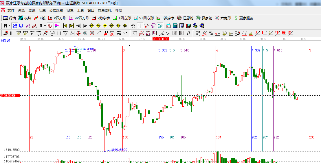 ★依據贏家江恩系統波段百分比延伸提示:黃金分割價格圖0.382位置是2149點,0.5位置是2090;