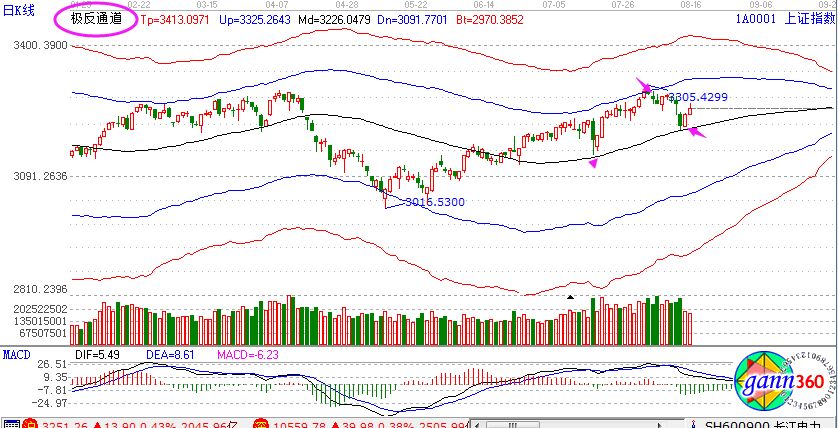 【贏家江恩點評:極反通道工具可幫助用戶解決大盤或個股趨勢判斷、價格買賣點,在日內差價高拋低吸方面更能提示其優勢。】