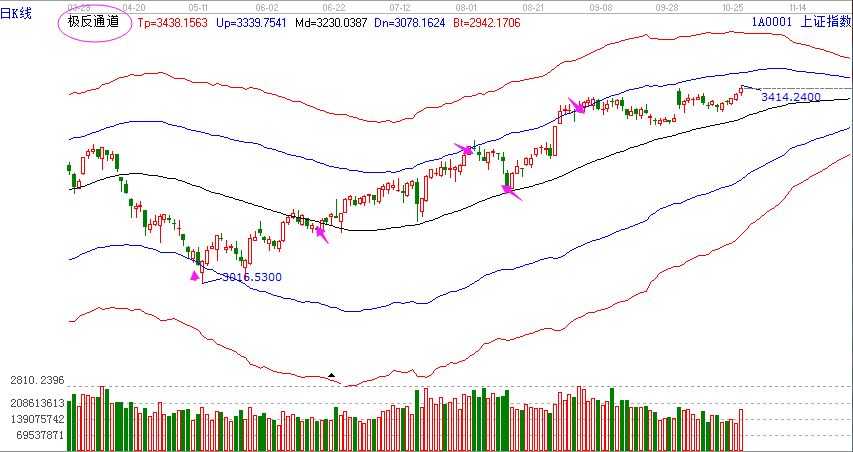 【贏家江恩點評:極反通道工具可幫助用戶解決大盤或個股趨勢判斷、價格買賣點,在日內差價高拋低吸方面更能提示其優勢?!?/strong>