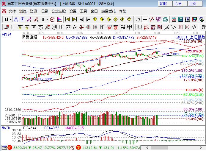 周一幾大指數出現中陰殺跌走勢,滬指低開低走下跌0.77%,深成指和中小板下跌近1%,創業板指則是大跌2%以上。板塊方面,保險、石油大漲,銀行收紅,有色、釀酒、券商、煤炭和鋼鐵板塊領跌,題材無亮點,地熱、物聯網、國產、環保、次新、稀土永磁等領跌概念,個股幾近普跌,跌停板過30家,上千家跌幅在4%以上。技術方面,滬指日線最低下探至極反通道生命線3355點附近止跌回升,江恩百分比多方堅守的315度3370點失而復得,短周期15分鐘跌破生命線進入弱勢通過,30、60分鐘圍繞生命線上下震蕩。中線波段看好的結論不變,調整是為了更好未來的表現,短線適當降低操作頻率,中長線則結合手持標的進行擇機的加倉,3378、3370為日內支撐,3399、3404為日內壓力。僅供參考,不構成任何投資建議。