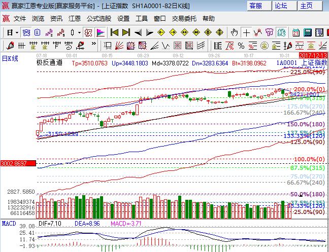 指數周一高開沖高回落震蕩微漲收紅十字星,創業板指小漲,深成指和中小板指則小跌,滬指3400點得而再失守。板塊方面,保險、石油大漲,釀酒和有色等小漲,家電、食品、煤炭、券商和銀行則跌幅居前;題材方面,次新和芯片概念領漲題材,填權、網安、高鐵、鈷和鋰等小范圍表現,自由港、新零售和蘋果概念領跌,個股漲跌互現,成交量較前日放大。技術方面,短周期15、30、60分鐘在極反通道生命線上附近運行,結合日線K線走勢,預計本周后兩個交易以延續震蕩為主,日線時間窗口為下周初,觀察60分鐘生命線得失,此線失守則引導日線再度向生命線靠攏,此線目前和江恩百分比315度重合,波段倉位4-5成,短線倉位3成倉,3380、3370為日內支撐,3413、3404為日內壓力。僅供參考,不構成任何投資建議。