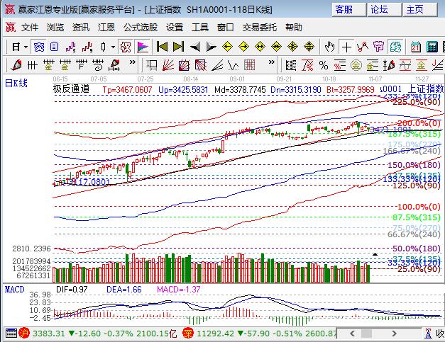 周四幾大指數低開低走再度調整,滬指等待考驗日線生命線,深成指走在邁向生命線的路上,創業板指則大跌1%跌破生命線。板塊方面,釀酒、券商、家電、煤炭、保險和醫藥等成為幾個為數不多的紅盤板塊;題材方面,僅次新、填權、人工智能和基因等局部表現,特斯拉、OLED、石墨烯、環保和蘋果概念領跌,個股下跌居多,跌幅4%以上的個股150家,成交量較前日萎縮。技術方面,受尾盤權重銀行、石油、保險回抽,日線試踩江恩百分比315度3370點后拉回,對應的短周期15、30、60分鐘均在極反通道生命線下弱勢區域,昨日早盤開盤群中分析,滬指破60分鐘生命線則盤面有強勢震蕩轉變成弱勢震蕩,日線極反通道生命線的考驗更加嚴峻,同時已提出轉為防守策略,波段倉位4成,短線降低1成至2成,3370、3360為日內支撐,3394、3400為日內壓力。僅供參考,不構成任何投資建議。