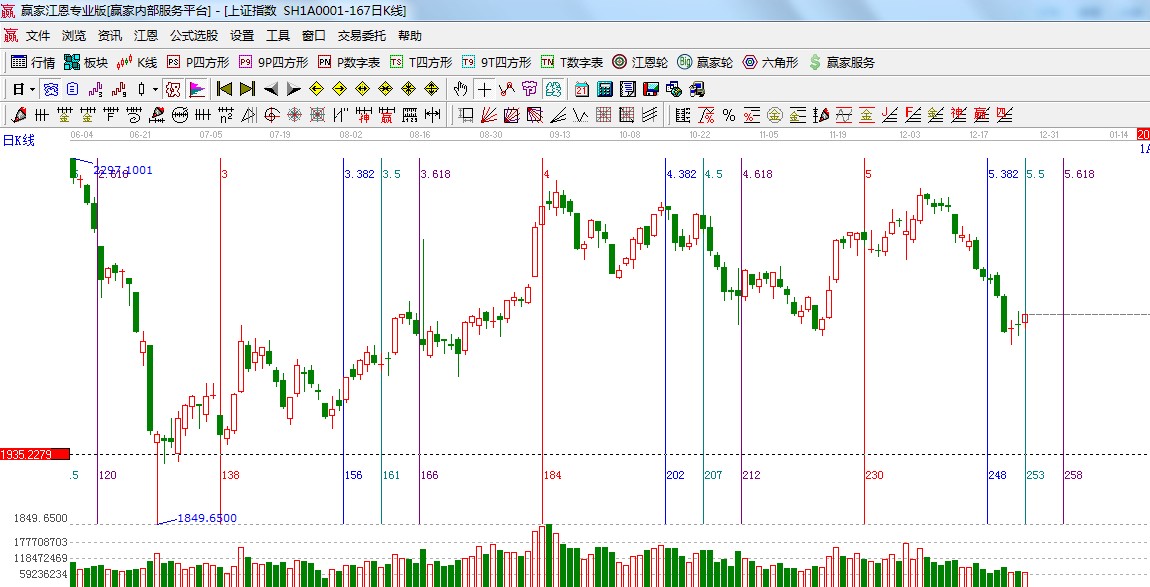 ☆依據贏家江恩系統乾坤K線提示:光頭陽線反抽到出局線位置,K線站上出局線后短線反抽等待短期的修復;