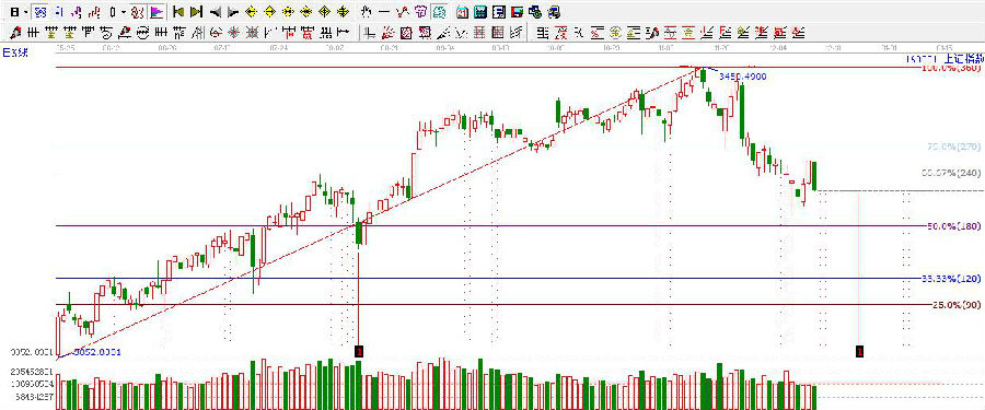 ☆依據贏家江恩理論系統江恩波段百分比提示:滬指展開回落,跌破240度3305點,3305點再次轉換為阻力。下方強支撐依然是3260點,3230點附近。