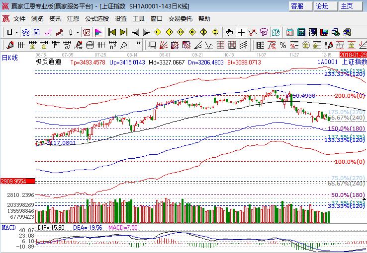 上周五滬指低開低走延續跌勢下跌0.8%,權重、周期股、白馬為砸盤主力,創業板指跌幅較小。板塊方面,僅保險微跌,鋼鐵、建材、釀酒、家電、地產、煤炭、銀行等權塊領跌;題材方面新零售、雄安、免疫治療和黃金概念局部表現,開板新股、維生素、OLED、5G和芯片領跌;個股跌多漲少成交量持續放大。技術方面,上證50收盤失守生命線,市場如順勢下探至江恩百分比、60天均線(2895點)處則短線機會出現,如圍繞生命線橫盤則變成賣點后續還有下探。滬指周線生命線和日線江恩百分比180度位置在3234附近,本周關注好此區域。16號系統工具用戶群培訓講到修整調整時間(短線機會在破新低,波機會在18年2、3月份),空間方面(短線為3230附近,波段為120度和135度對應的3160附近),操作策略中長線標的4成倉持股,短線等待到達180度百分比后盤中做決策,3249、3234為日內支撐,3275、3283為日內壓力。僅供參考,不構成任何投資建議。
