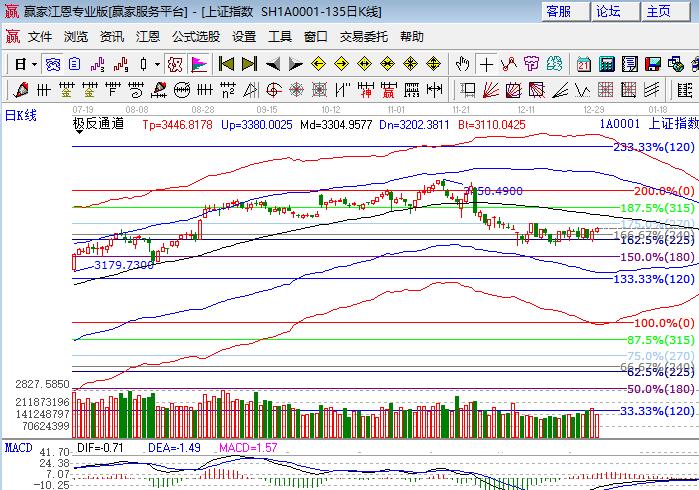 滬指上周五震蕩小漲,權重操控全天處于經盤狀態,深市幾大指數走勢相對強于滬指。板塊方面,地產、銀行領漲貢獻最大,周四表現的白馬股保險、釀酒等領跌;題材方面,芯片、蘋果、維生素概念領漲,次新、高送轉概念較弱,個股上漲居多但分化依然嚴重,成交量較前日萎縮。技術方面,滬指17年收官K線走勢不錯,周、月K線都在極反通道生命線上,日線維持在江恩百分比225度與270度3272點、3320區間震蕩,短周期15、30、60分鐘在生命線上附近運行,15分鐘外軌線與百分比270度在同一位置,盤中上攻時注意此位置壓力,本周已然是周線的時間點,向上重點看日線生命線,持股心態漲不喜跌不悲。上證50關注日線生命線2850點得失,創業板120度與135度構造平臺。操作策略上波段4成倉持股不動,3288、3272為日內支撐,3308、3321為日內壓力。僅供參考,不構成任何投資建議。