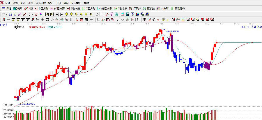 ☆依據贏家江恩理論系統極反通道提示:滬指圍繞60分藍色外軌線反復整理,指標有頂背離跡象,預計短期有向下調整的可能,下方日線生命線支撐依舊是3345點附近。整體,日線生命線之上,趨勢強勢。