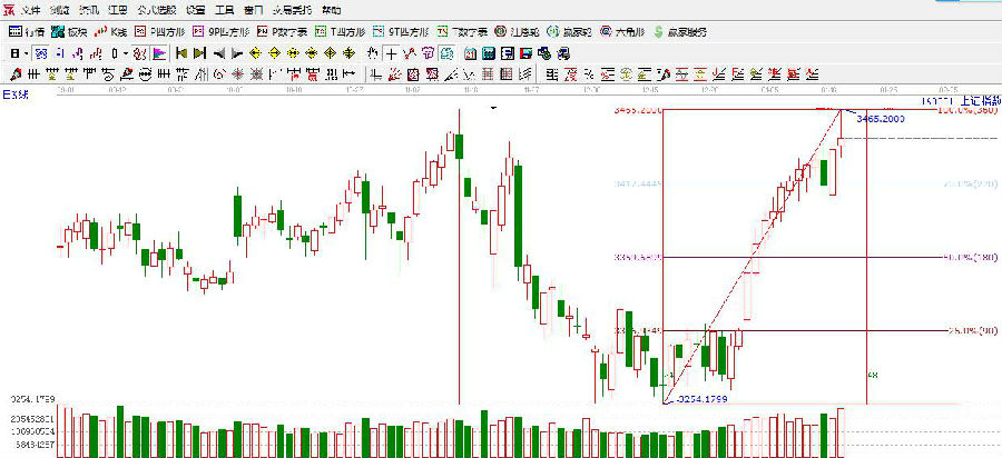 ★依據贏家江恩理論系統江恩波段百分比提示:滬指在創新高,阻力位依舊是3456點附近,支撐是百分比270度線3412點附近。