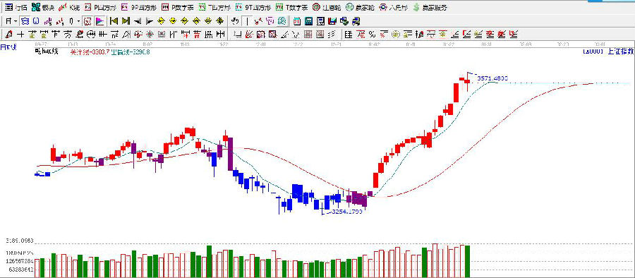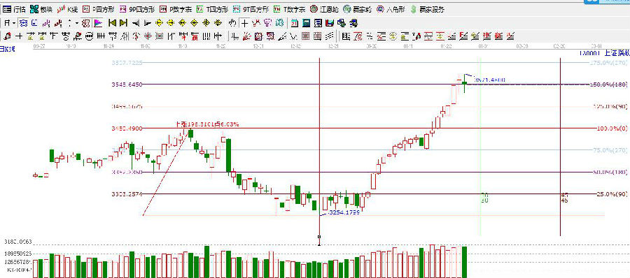 ★依據(jù)贏家江恩理論系統(tǒng)極反通道提示:滬指繼續(xù)在藍色線之上強勢區(qū)域運行,再收十字星,表明周線藍色上軌線壓力凸顯,短期繼續(xù)關(guān)注周線藍色上軌線3575點附近。
