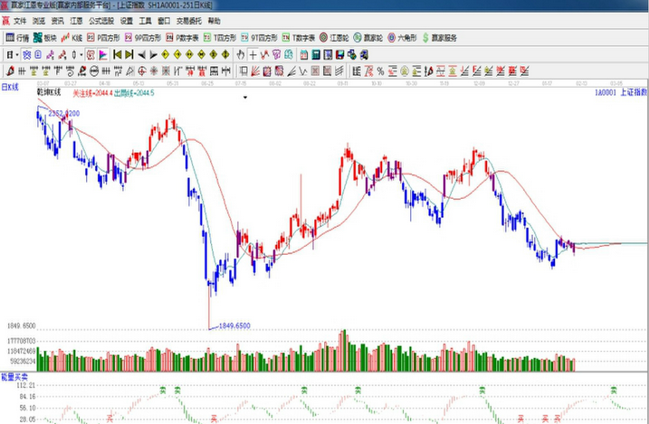 ★  依據(jù)贏家江恩系統(tǒng)乾坤K線提示:突破紅色關(guān)注線 出現(xiàn)紫色警示信號,謹(jǐn)慎看多。