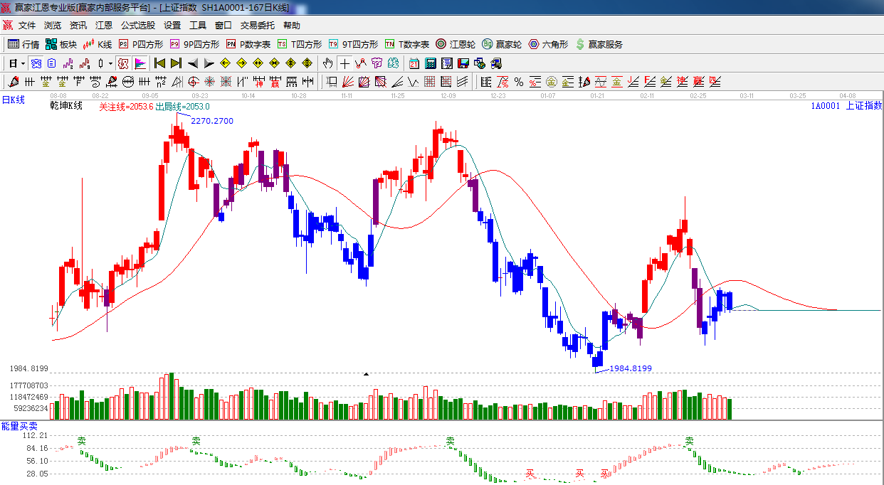 周三早盤指數小幅低開,圍繞生命線震蕩整理,午后震蕩下挫,破位生命線,收中陰線,截止收盤,滬市以2053.08點報收,跌0.89%,深市以7298.13點報收,跌0.67%。盤面上,熱點比較凌亂,板塊方面,互聯網,藍寶石,網絡金融,紡織服裝等漲幅居前,油改,有色,航空跌幅居前,權重股整體低迷,周四位驚蟄節氣窗口,留意盤面。