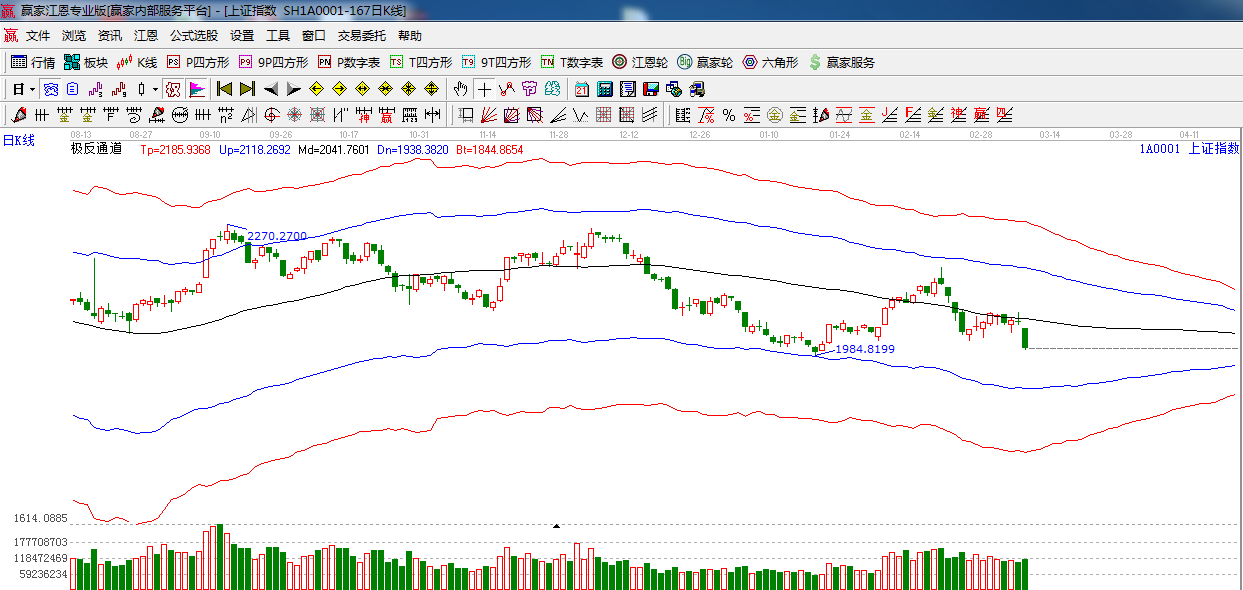 綜上所述:依據贏家江恩技術工具分析得出:早盤滬深兩市大幅低開,一路震蕩走低,明日下方關注180度1984點,240度1951點,短期市場弱勢震蕩整理為主,暫時不會出現大幅反彈,多看少動,等待市場跌出機會,星級風險提示,看空。
