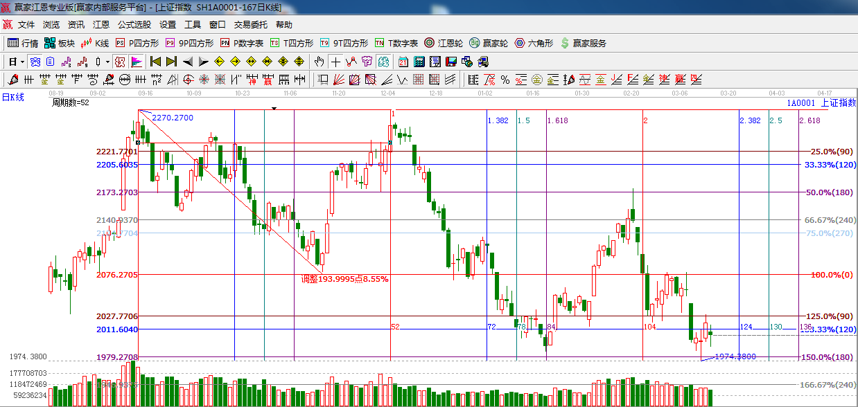 ☆依據(jù)贏家江恩系統(tǒng)黃金時間周期線提示:后期時間之窗18號,24號。