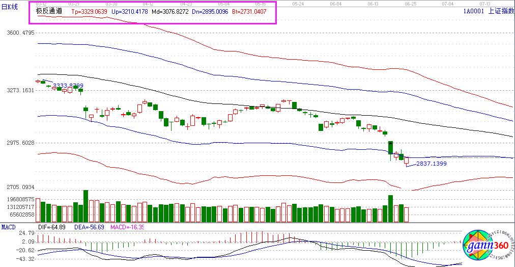 滬指漲0.49%,報收2889點;深成指漲1.00%,報收9409點;創(chuàng)業(yè)板漲1.84%,報收1549點。盤面上看,知識產權保護、通信服務、數字中國、草甘膦、國產軟件、鋰電池等少數板塊上漲;豬肉、機場航運、百度、概念等少數板塊下跌。全天,滬股通凈流出1億元,深股通凈流入3.3億。相應的極反通道指標的支撐壓力提示,如下圖所示: