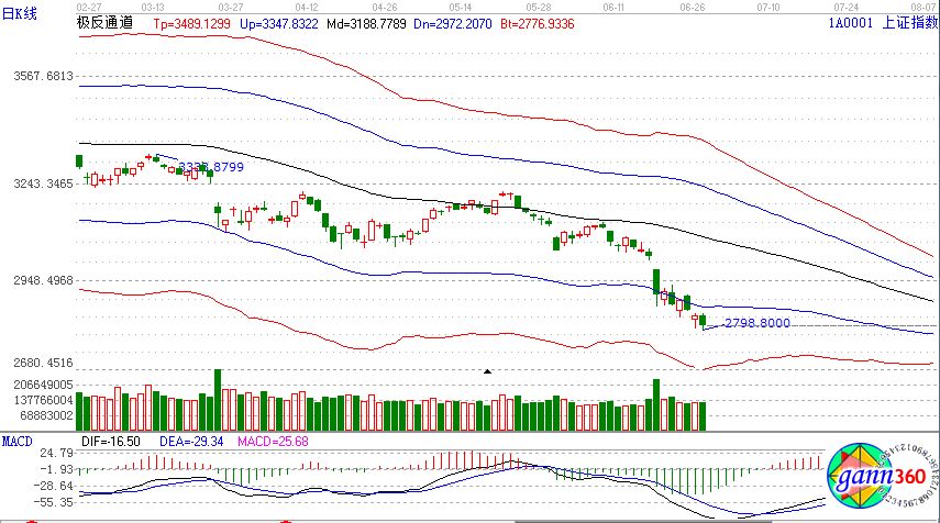 滬指跌1.10%,報(bào)收2812點(diǎn);深成指跌1.83%,報(bào)收9168點(diǎn);創(chuàng)業(yè)板跌1.19%,報(bào)收1546點(diǎn)。從盤(pán)面上看,石油采掘、ST板塊、造紙、紡織制造、稀土永磁、黃金等板塊漲幅居前;超級(jí)品牌、白酒、機(jī)場(chǎng)航運(yùn)、鋼鐵、互聯(lián)網(wǎng)彩票、細(xì)胞免疫治療、醫(yī)藥商業(yè)等板塊跌幅居前。滬股通凈流入317萬(wàn),深股通凈流出11億。相應(yīng)的極反通道指標(biāo)的支撐壓力提示,如下圖所示: