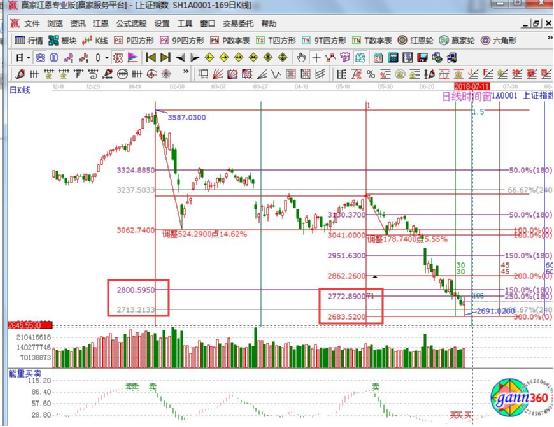 ☆依據贏家江恩理論系統黃金時間周期線提示:指數跌落到2700附近,是否能有效轉勢,仍需關注下個時間窗口黃金時間周期線1.5倍時間位置7月11日。