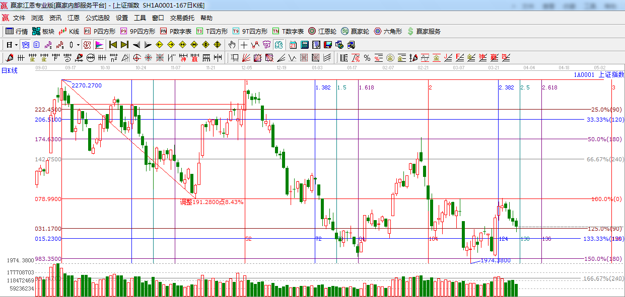 ☆依據(jù)贏家江恩系統(tǒng)黃金時(shí)間周期線提示:明日是四月一日,是前期提到的時(shí)間之窗,密切留意盤面變化。