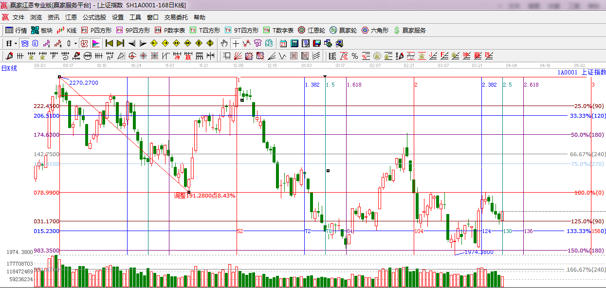 綜上所述:依據贏家江恩技術工具分析得出,大盤在江恩90度支撐2031附近附近短線止跌反彈,不過目前整體的量能不足以支持大盤繼續反彈,所以短期以維持震蕩走勢為主,周三謹防沖高回落動作,后期關注量能的跟進情況,操作方面,倉位控制在3-5成,星級風險提示,謹慎看多