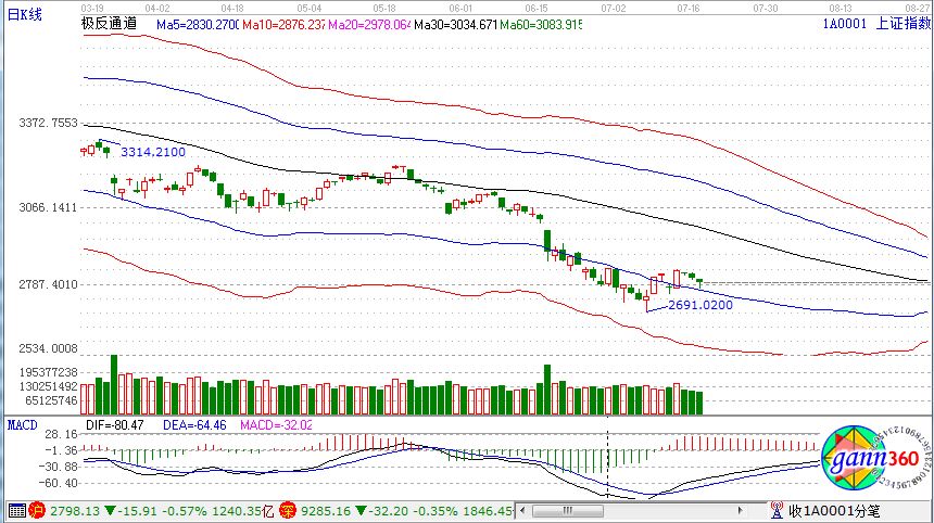 滬指跌0.57%,報(bào)收2798點(diǎn);深成指跌0.35%,報(bào)收9285點(diǎn);創(chuàng)業(yè)板漲0.29%,報(bào)收1621點(diǎn)。從板塊漲幅上看,石墨烯、農(nóng)機(jī)、養(yǎng)殖、化工新材料、5G、互聯(lián)網(wǎng)彩票等漲幅居前;鋼鐵、超級(jí)品牌、白酒、煤炭、海南、醫(yī)藥電商等板塊跌幅居前。滬股通凈流出9000萬,深股通凈流出4億。相應(yīng)的極反通道指標(biāo)的支撐壓力提示,如下圖所示: